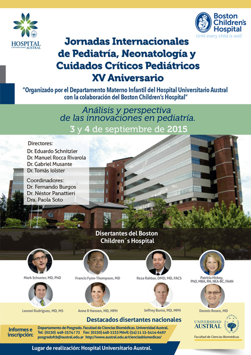 Del 3 al 4 de septiembre, se realizarán las Jornadas Internacionales de Pediatría, Neonatología y Cuidados Pediátricos en el Hospital Universitario Austral. Participarán destacados disertantes internacionales del Boston Children’s Hospital.